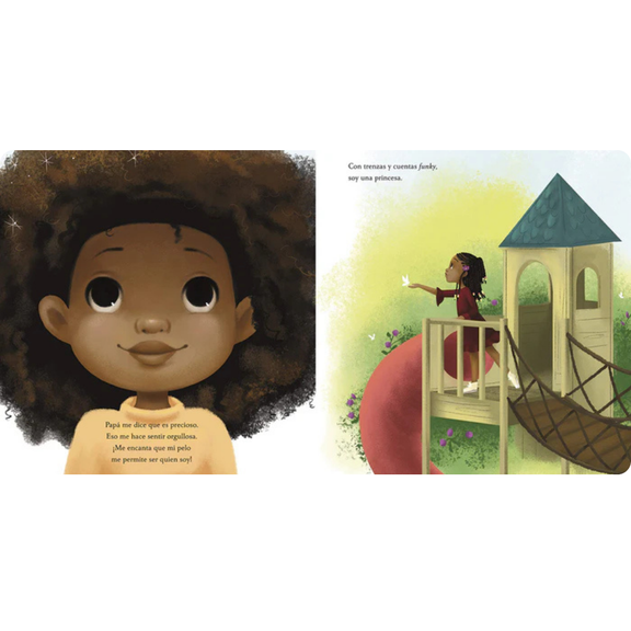 Amor de pelo de Matthew A. Cherry, ilustrado por Vashti Harrison, es un alegre libro ilustrado bilingüe que celebra el cabello negro natural y el amoroso vínculo entre un padre y su hija. El cabello de Zuri está lleno de personalidad: se enrosca, se riza y la corona con confianza. Cuando llega un día especial, su papá interviene para ayudar a peinarlo, a pesar de que nunca lo ha hecho antes. Con paciencia, humor y determinación, aprende a crear el look perfecto. A través de ilustraciones radiantes y una narrativa conmovedora, el libro honra la autoexpresión, el amor familiar y la belleza de abrazar quién eres. Es un recurso poderoso para aulas bilingües que exploran la identidad, la autoestima y el orgullo cultural.