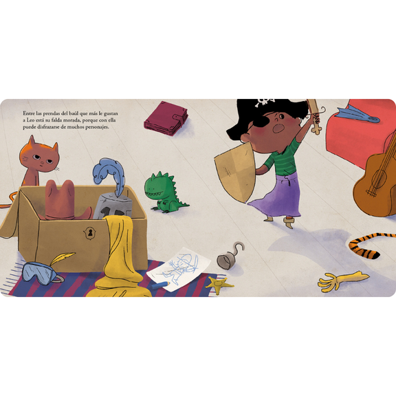 La falda morada de Leo, de Irma Borges, ilustrada por Francesco Fagnani, es un libro ilustrado bilingüe que desafía los estereotipos de género a través de la lúdica infancia. A Leo le encanta disfrazarse —de pirata, superhéroe, caballero— y disfruta especialmente de usar una falda lavanda. Pero cuando alguien lo confunde con una niña, se siente frustrado y confundido. Sus padres les explican con cariño que la ropa no define la identidad y comparten historias sobre cómo han cambiado las normas de la moda con el tiempo. Con expresivas ilustraciones y un mensaje cálido y empoderador, el libro fomenta la autoexpresión e invita a los lectores a cuestionar las expectativas sociales, lo que lo convierte en un recurso valioso para las aulas bilingües que exploran la identidad, la inclusión y la libertad personal.