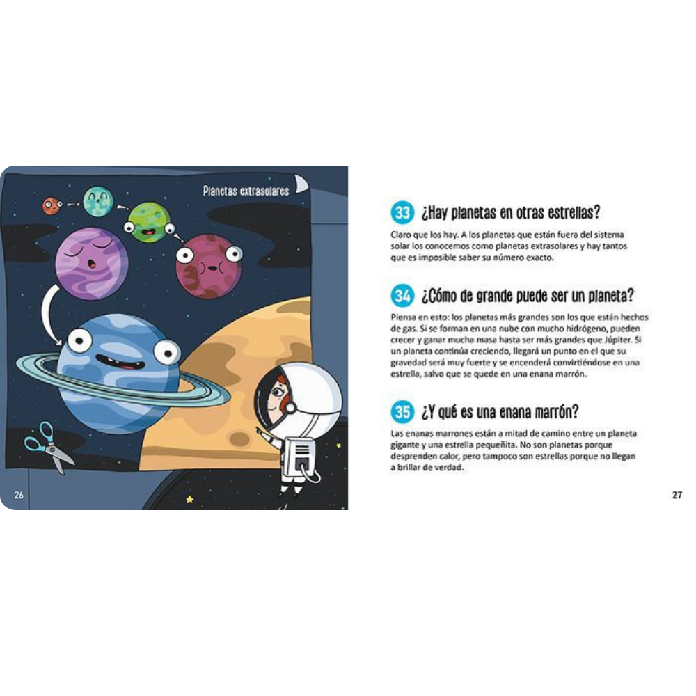 101 preguntas y respuestas del espacio, de Carlos Pazos, es un dinámico libro ilustrado de no ficción que lleva a los lectores curiosos en un viaje desde la Tierra hasta los confines de la galaxia. Con ilustraciones divertidas y un texto claro en español, responde a preguntas como por qué la Luna siempre muestra la misma cara, cuál es la velocidad de la luz y si alguna vez viajaremos a Marte. Guiados por el personaje de Valentina, los niños de 7 a 10 años exploran la astronomía, la física y las maravillas cósmicas de una manera accesible y divertida. Es un recurso dinámico en dos idiomas para despertar la curiosidad científica y fomentar la conversación en el aula.