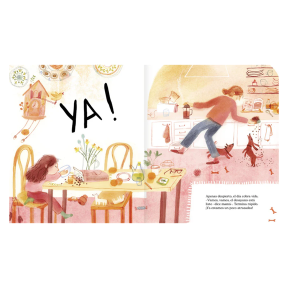 "A tiempo" de Marina Ruiz, ilustrado por Alejandra Acosta, es un libro ilustrado poético y contemplativo que sigue a una niña que anhela que el tiempo pase rápido, hasta que comienza a percibir la magia silenciosa de cada instante. A través de una prosa delicada e imágenes inspiradas en la naturaleza, la historia invita a los lectores a relajarse y apreciar el presente, desde el movimiento de un caracol hasta el susurro de los árboles. Para los docentes bilingües, este libro ofrece una hermosa manera de explorar el vocabulario relacionado con el tiempo, la atención plena y el mundo natural, tanto en español como en inglés. Su tono lírico y su resonancia emocional lo hacen ideal para fomentar la reflexión y la expresión bilingüe en las aulas de primaria.