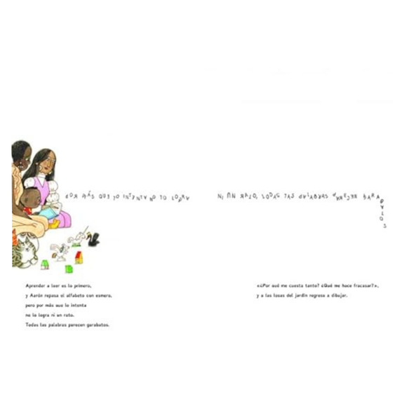 A Aarón Soñador le encanta escuchar historias y sueña con, algún día, escribirlas él mismo. Pero cuando intenta leer, todas las letras se mezclan y le parecen unos garabatos, así que no tarda en darse cuenta de que tiene más dificultades para aprender que sus compañeros. El día que su maestra pide que cada niño de la clase escriba una historia, Aarón no logra hacerlo. Justo cuando pensaba que ser un gran escritor estaba fuera de su alcance, llega la inspiración y Aarón descubre una forma muy particular de contar sus historias.