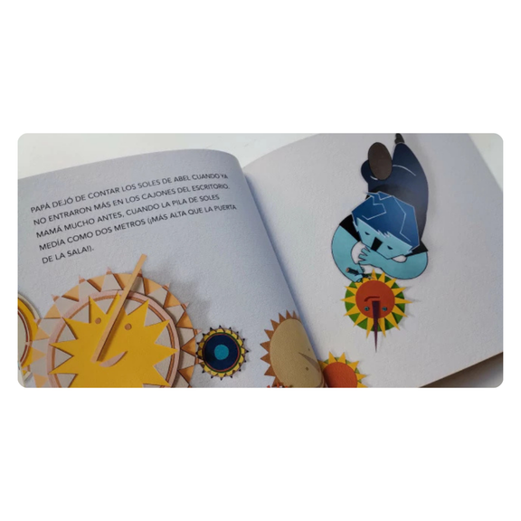 Abel no habla ni sonríe, dibuja soles con luz propia, brillantes y fosforescentes, que regala a todo el mundo. Cuando las personas se cansaron de tantos soles, le pidieron que dibuje otra cosa. Abel dejó de hacerlos y entonces vino la tormenta, que parecía no tener fin, hasta que llegó Candela, y los soles de Abel volvieron a salir.