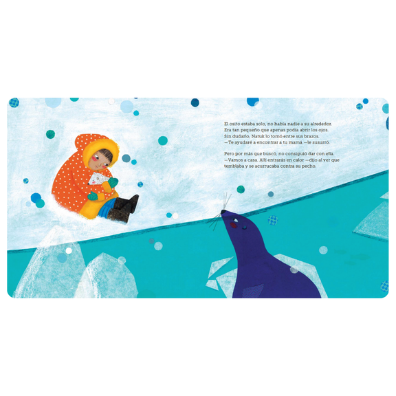 Abrazo de oso, de Susanna Isern, ilustrada por Betania Zacarías, es una tierna fábula invernal sobre el profundo vínculo entre Natuk, una joven inuit, y su mejor amigo, Oso Blanco. Cuando una catástrofe amenaza con separarlos, su amistad se pone a prueba, revelando la fuerza del amor y la lealtad a través de la distancia y el peligro. Con un texto poético en español e ilustraciones expresivas, este cuento para niños de 4 a 8 años celebra la resiliencia emocional y la conexión que perdura incluso cuando los amigos están separados.