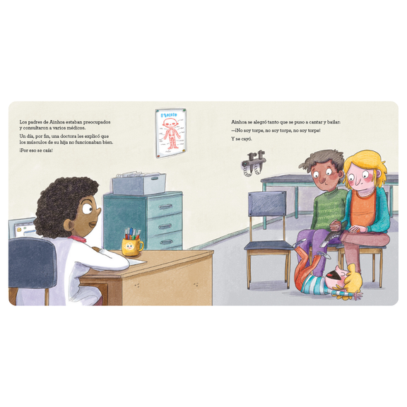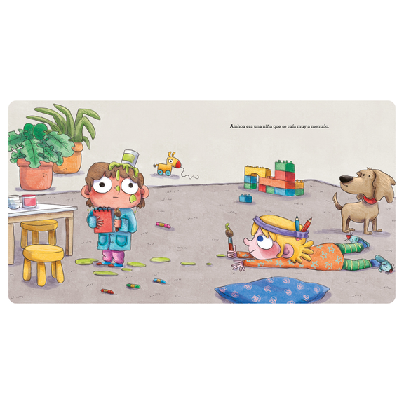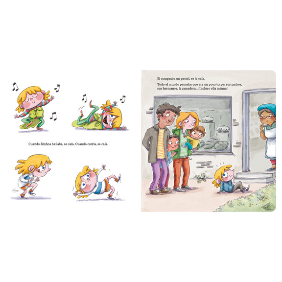 Ainhoa revoltosa, de José Carlos Andrés, ilustrada por Lucía Serrano, es un emotivo libro ilustrado bilingüe inspirado en hechos reales. Sigue la historia de Ainhoa, una niña llena de energía que siempre se cae, ya sea corriendo, bailando o incluso recogiendo cosas. Su familia cree que simplemente es torpe, hasta que un médico revela que padece una afección muscular que eventualmente requerirá una silla de ruedas. A medida que sus padres comienzan a tratarla de manera diferente, Ainhoa se resiste, queriendo ser vista no por su discapacidad, sino por su espíritu travieso y alegre. Con ilustraciones enérgicas y un mensaje de inclusión, el libro fomenta la empatía y afirma que todos los niños merecen ser tratados con respeto y amor, algo especialmente poderoso en las aulas bilingües que exploran la discapacidad, la identidad y la autoestima.