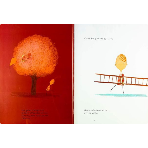 Atrapados, de Oliver Jeffers, es un libro ilustrado divertidísimo y enigmático que cuenta la historia de Floyd, un niño cuya cometa se atasca en un árbol, lo que le lleva a lanzarle objetos cada vez más ridículos con la esperanza de liberarla. Desde zapatos hasta una ballena y el fregadero de la cocina, cada nuevo objeto añade absurdo y caos visual, creando un encantador arco narrativo impulsado por la imaginación y la perseverancia. Con vibrantes ilustraciones y un texto divertido en español, este cuento celebra la resolución creativa de problemas y la escalada cómica, lo que lo convierte en una lectura en voz alta favorita para niños de 5 a 8 años y un recurso dinámico para fomentar debates en clase sobre la estructura de la historia y la relación causa-efecto.