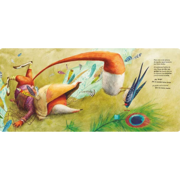 Bogo quierolotodo, de Susanna Isern, ilustrado por Sonja Wimmer, es un libro ilustrado en español que sigue la historia de Bogo, el zorro, quien sueña con tener todas las habilidades de otros animales: volar como un pájaro, ver en la oscuridad como un búho o respirar bajo el agua como un pez. Inventa ingeniosos artilugios para imitar estas características, pero ninguno funciona según lo planeado. Con el tiempo, Bogo descubre que sus propias cualidades son valiosas y únicas, lo que le lleva a un momento de autoaceptación y apreciación. Los educadores pueden usar esta historia para explorar temas de identidad, autoestima y diversidad a través de la narración imaginativa y el arte expresivo.