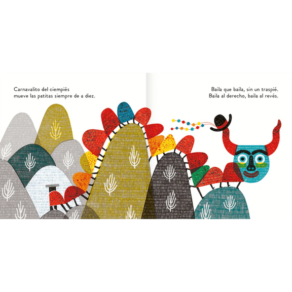 Carnavalito del ciempiés de Carmen Lavanchy, ilustrado por Paloma Valdivia, es un libro de cartón rítmico y alegre que los educadores bilingües pueden usar para integrar la música, el movimiento y la lectoescritura temprana en español. Inspirada en la querida canción de Mazapán, la historia sigue a un ciempiés juguetón que baila "al derecho y al revés", invitando a los niños a cantar, reír y moverse. Con un texto dinámico y rimado e ilustraciones expresivas, este libro fomenta la conciencia fonológica, la motricidad gruesa y la apreciación cultural. Su formato robusto y su español auténtico lo hacen ideal para aulas de preescolar enfocadas en la lectura interactiva en voz alta y el desarrollo multisensorial del lenguaje.