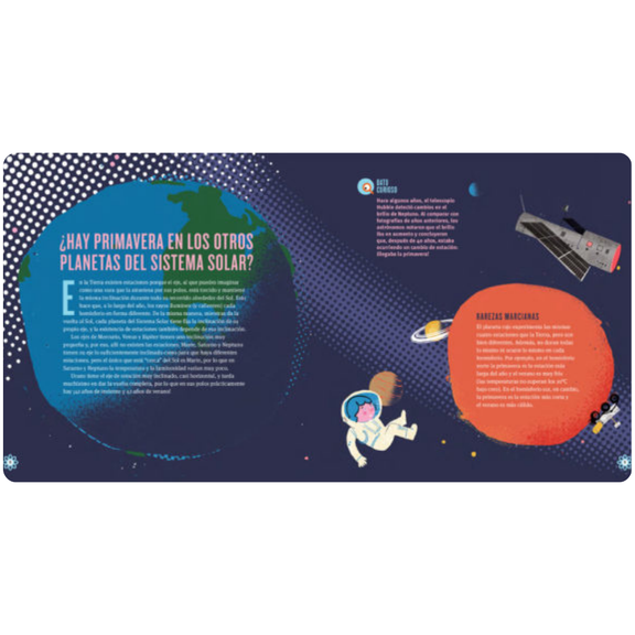 Ciencia para pasar la primavera, de Valeria Edelsztein, ilustrado por Javier Reboursin, es un libro ilustrado de no ficción que explora la ciencia tras las transformaciones de la primavera. Dirigido a niños a partir de 7 años, responde a preguntas como "¿Cómo saben las plantas que es hora de florecer?", "¿Por qué aumentan las alergias en primavera?" y "¿Se enamoran los animales?". Con ilustraciones divertidas y explicaciones claras, el libro profundiza en temas como los equinoccios, las reacciones a la histamina y el comportamiento animal, haciendo que la ciencia estacional sea divertida y accesible. Forma parte de la serie Ciencia todo el año de Ediciones Iamiqué.
