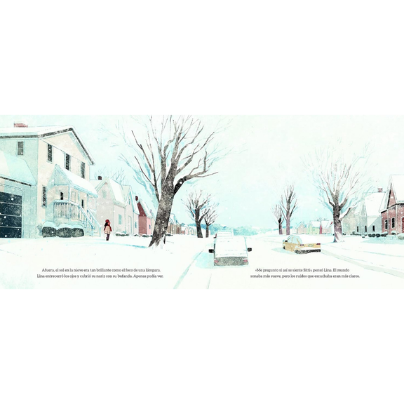 Diez maneras de escuchar la nieve de Cathy Camper, ilustrado por Kenard Pak y traducido por Rossy Evelin Lima, es un libro ilustrado poético que celebra la atención plena, la familia y la observación silenciosa. En una mañana nevada, Lina camina a la casa de su abuela para ayudar a cocinar warak enab, un plato tradicional. En el camino, escucha, no solo con sus oídos, sino con todo su ser, y descubre diez maneras sutiles de escuchar la nieve. A través de un texto lírico en español e ilustraciones suaves y evocadoras, la historia explora con delicadeza temas de conexión intergeneracional, herencia cultural y la belleza del silencio. Ideal para niños de 4 a 8 años, es un recurso reflexivo en dos idiomas que invita a los lectores a reducir la velocidad y observar el mundo que los rodea.