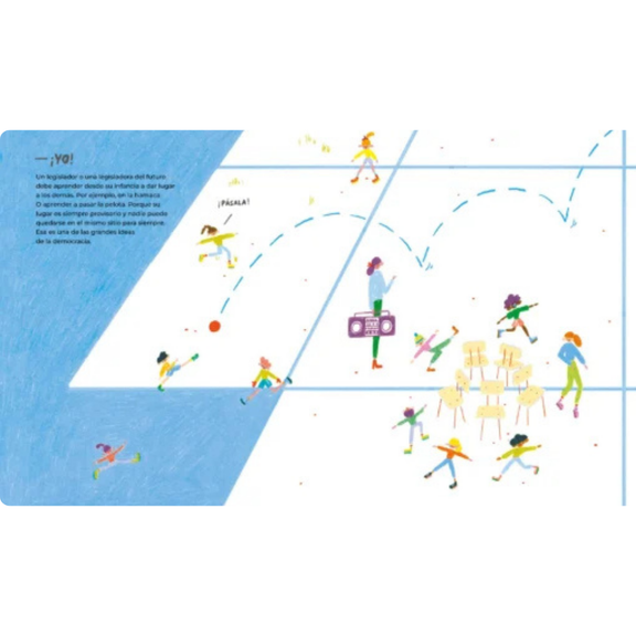 Legisladores del futuro: ¡Hola! de Isabel Minhos Martins es un libro ilustrado que invita a la reflexión y que los educadores bilingües pueden usar para presentar la participación cívica, los valores democráticos y el rol del gobierno en español. Enmarcado en la pregunta de en qué podrían convertirse los niños juguetones de hoy mañana, el cuento invita a los lectores a imaginar a los futuros legisladores y a reflexionar sobre las habilidades que necesitarán, como escuchar, colaborar y pensar críticamente. Con divertidas ilustraciones de Carolina Celas y un dossier informativo al final que explica el funcionamiento del Poder Legislativo, este libro es ideal para aulas de primaria superior centradas en estudios sociales, ética y desarrollo comunitario. Anima a los estudiantes a verse como participantes activos en la construcción de una sociedad justa e inclusiva.