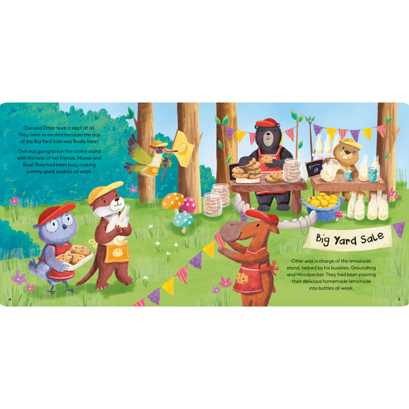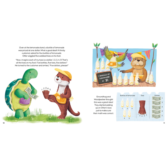 Mini mathematicians will love following this funny, sweet-filled adventure that gently introduces them to simple addition and money skills. Owl, Otter, and their friends are so excited to start selling their delicious cookies and bottles of lemonade. Everything is off to a great start until the friends begin muddling up how much customers need to pay. With more and more customers waiting and lots of numbers to add up, one disaster leads to another! But never fear - teamwork and Otter’s wiggly toes save the day…